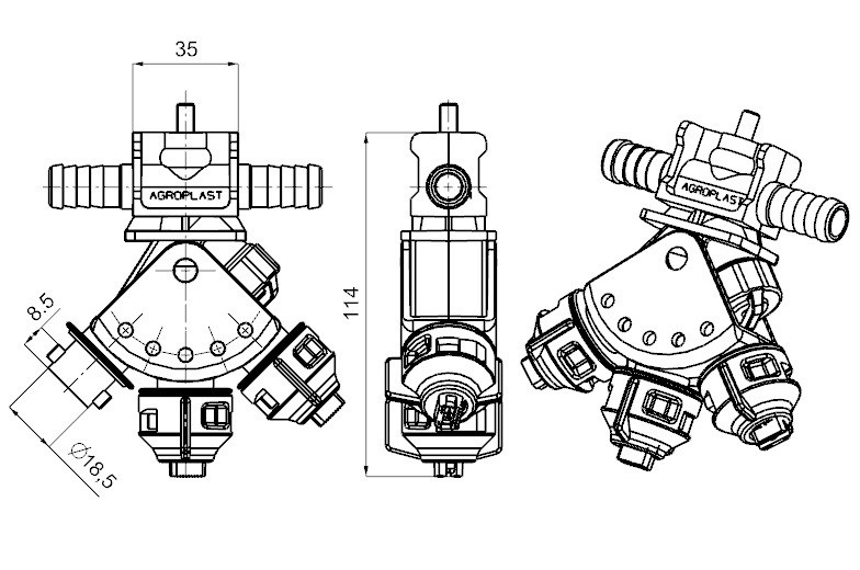 - головка спроектирована для того, чтобы можно было с легкостью переоборудовать опрыскиватель с корпусом обычным в опрыскиватель с наличием трех головок;