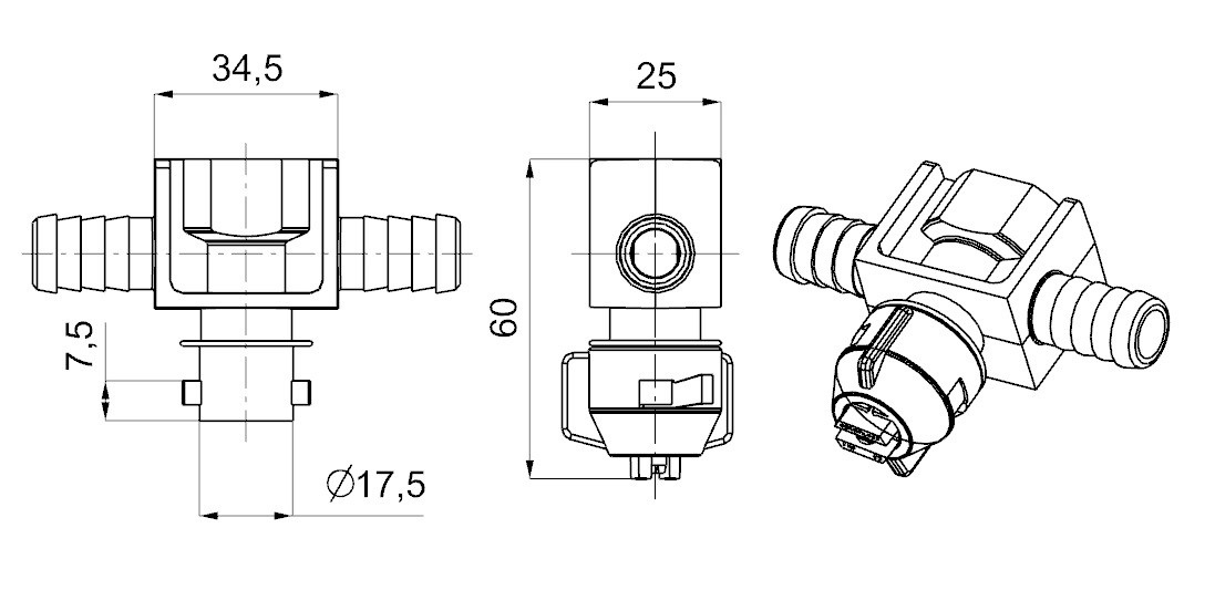 - запорным клапаном, расположенным на корпусе с боковой стороны;